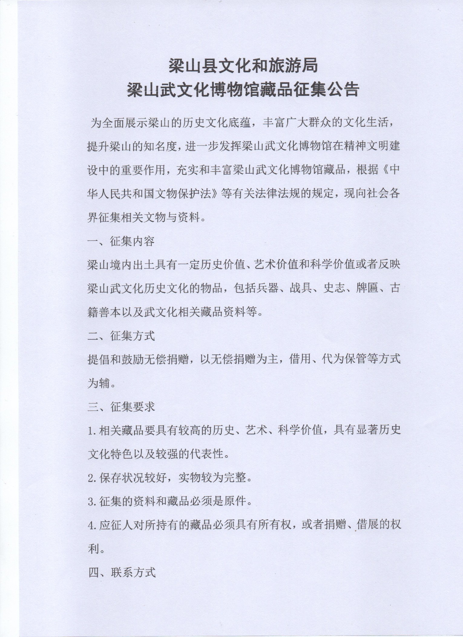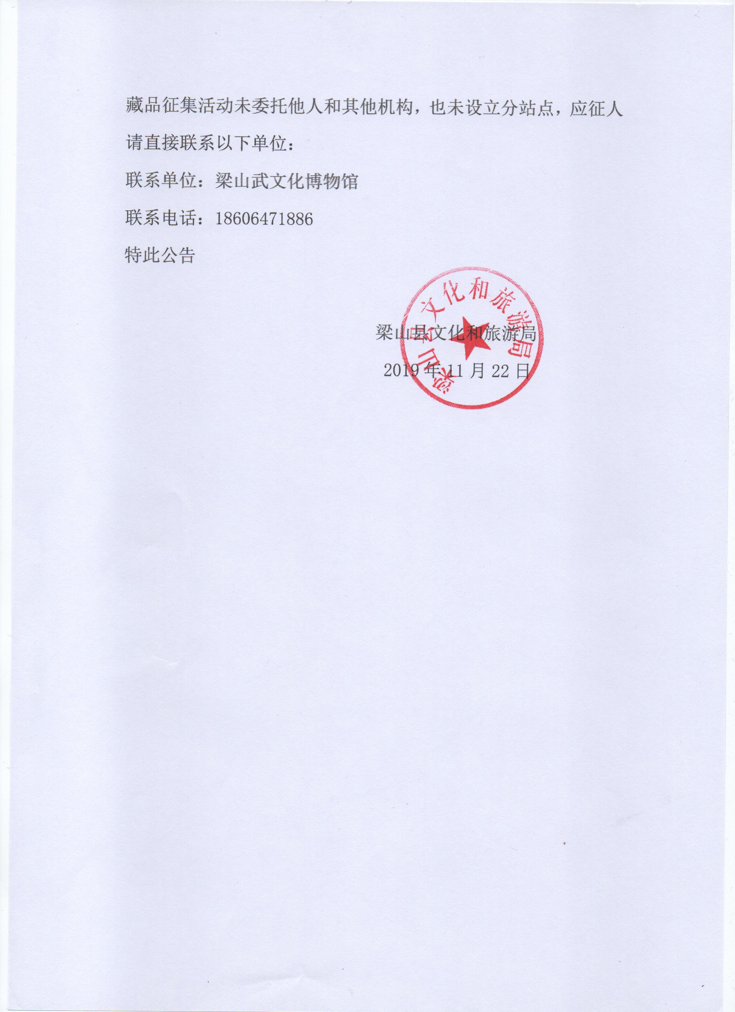 梁山县文旅局关于《藏品征集公告》的批复