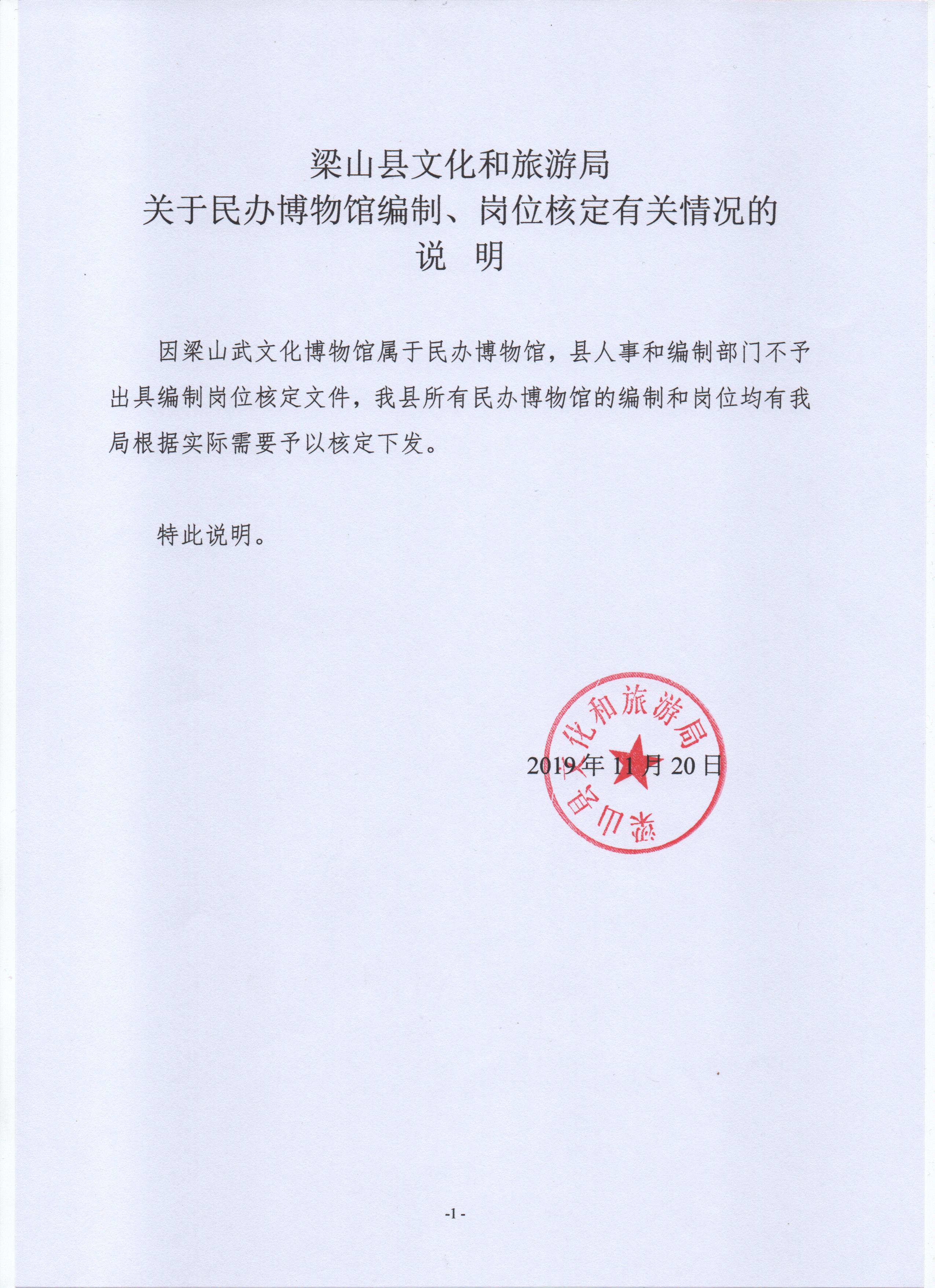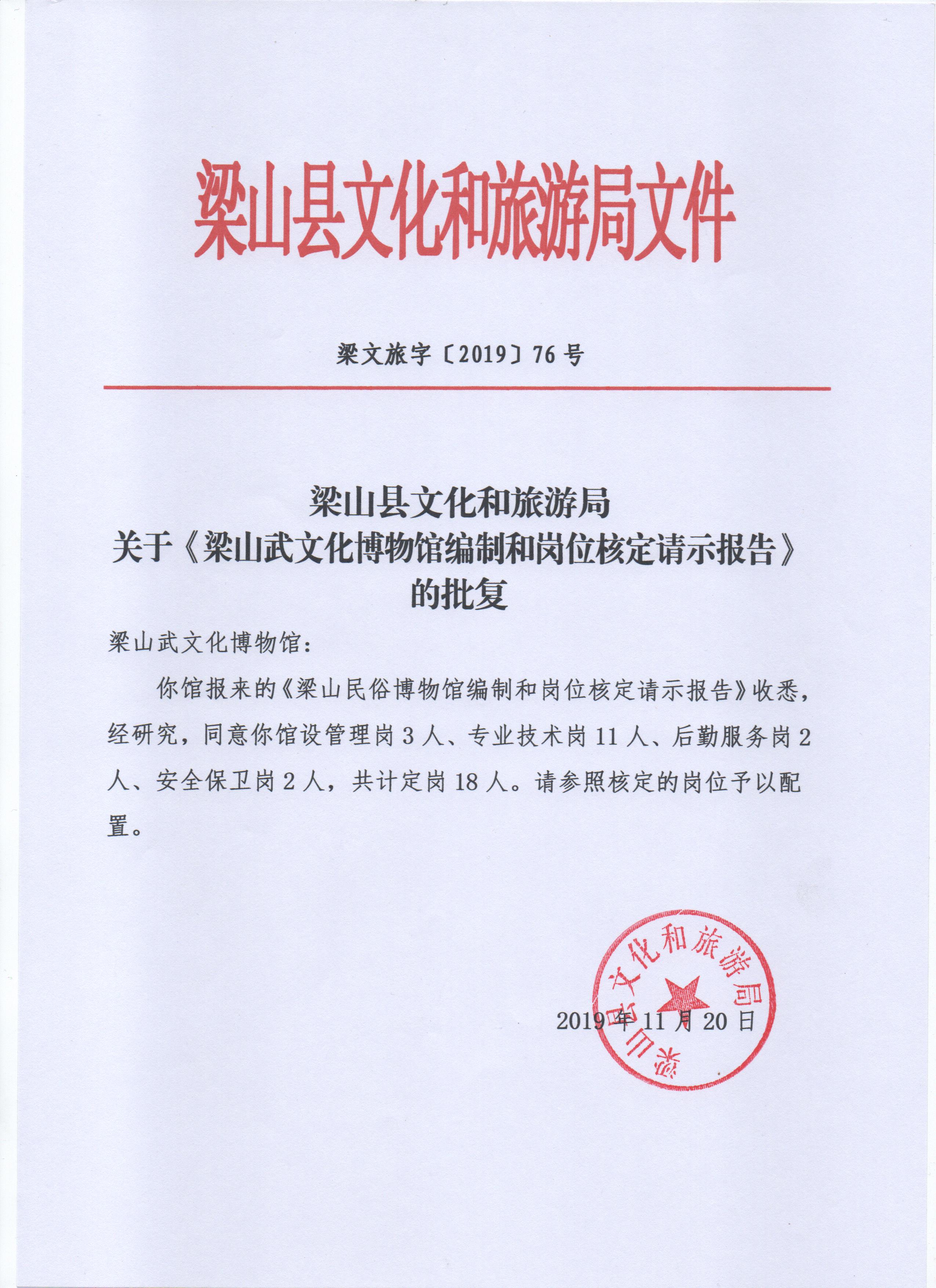梁山县文旅局关于梁山武文化博物馆编制岗位批复文件