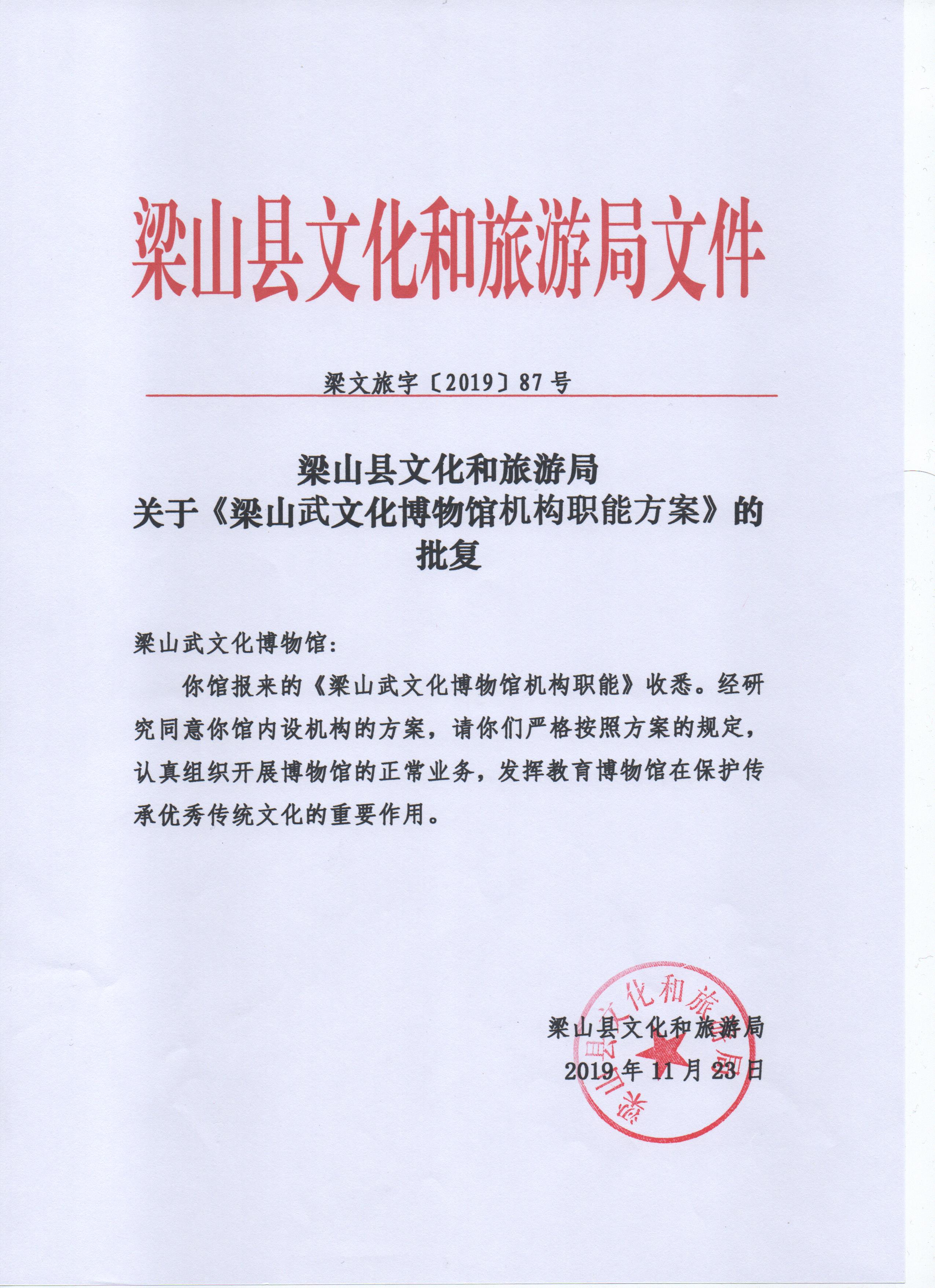梁山县文旅局关于武文化博物馆机构职能批复文件