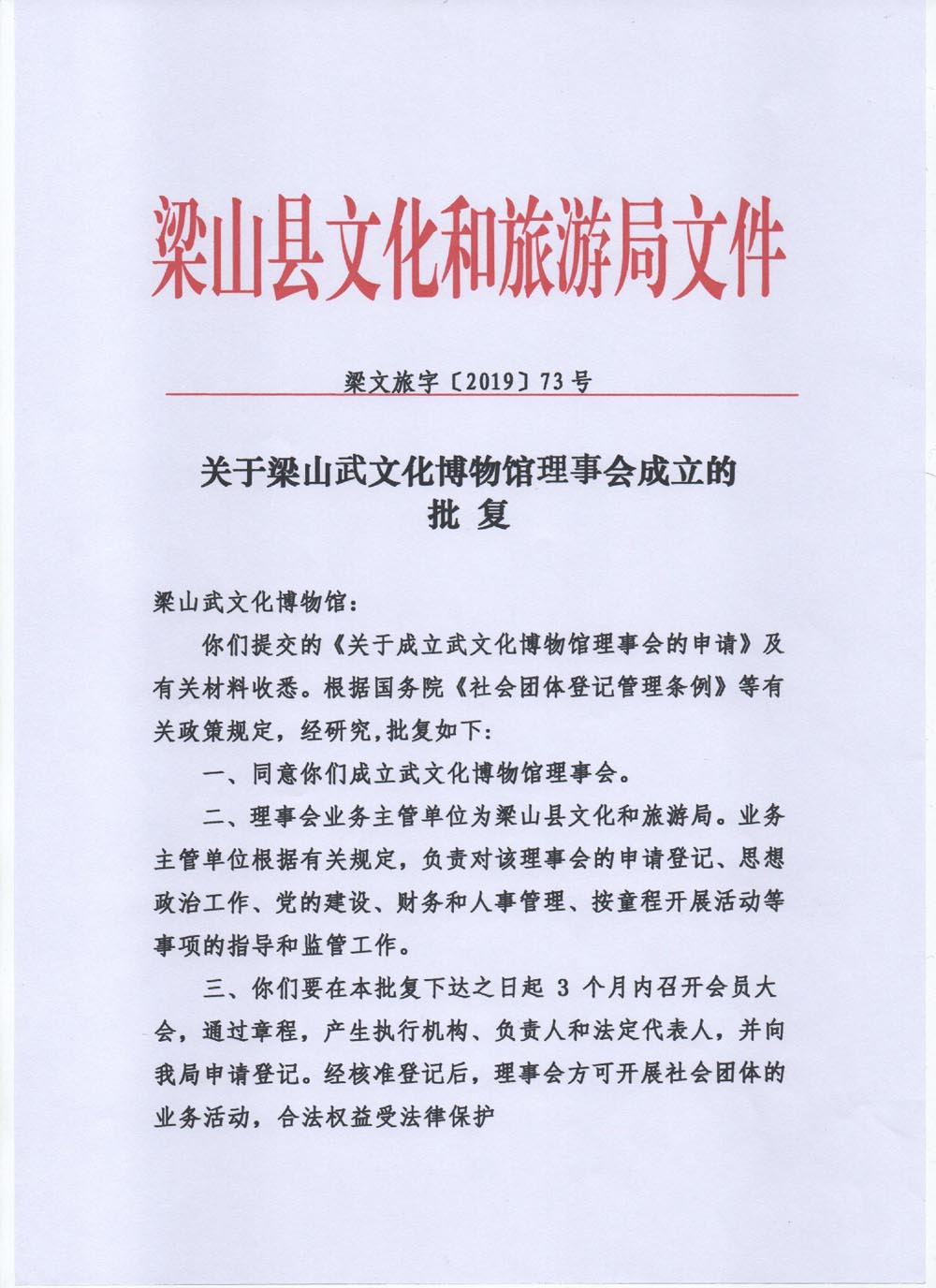 梁山县文旅局关于梁山武文化博物馆理事会批复文件