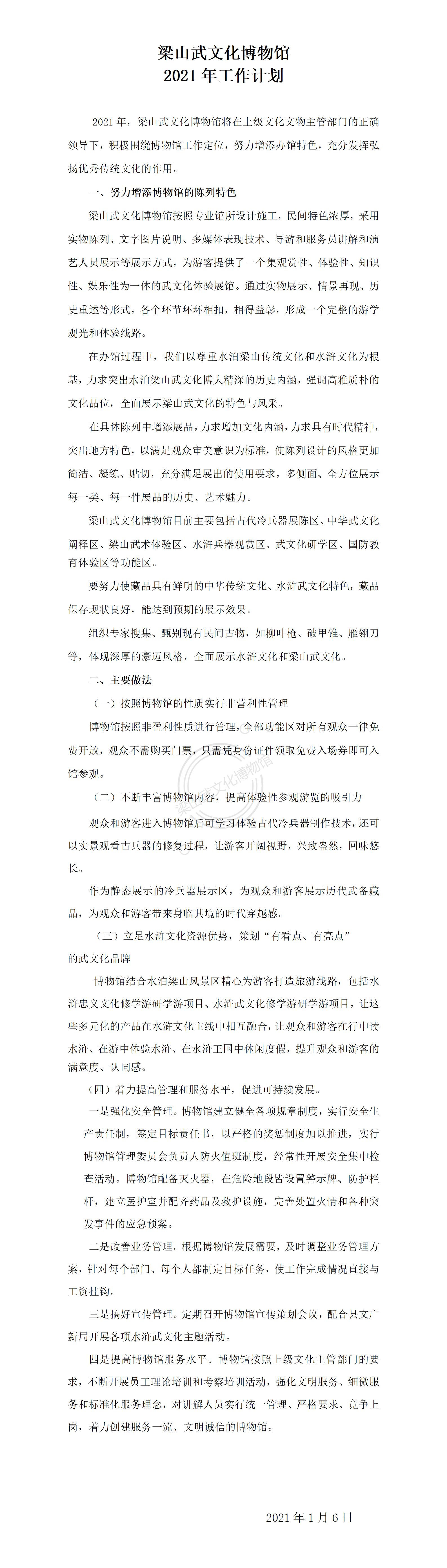 梁山武文化博物馆2021年工作计划
