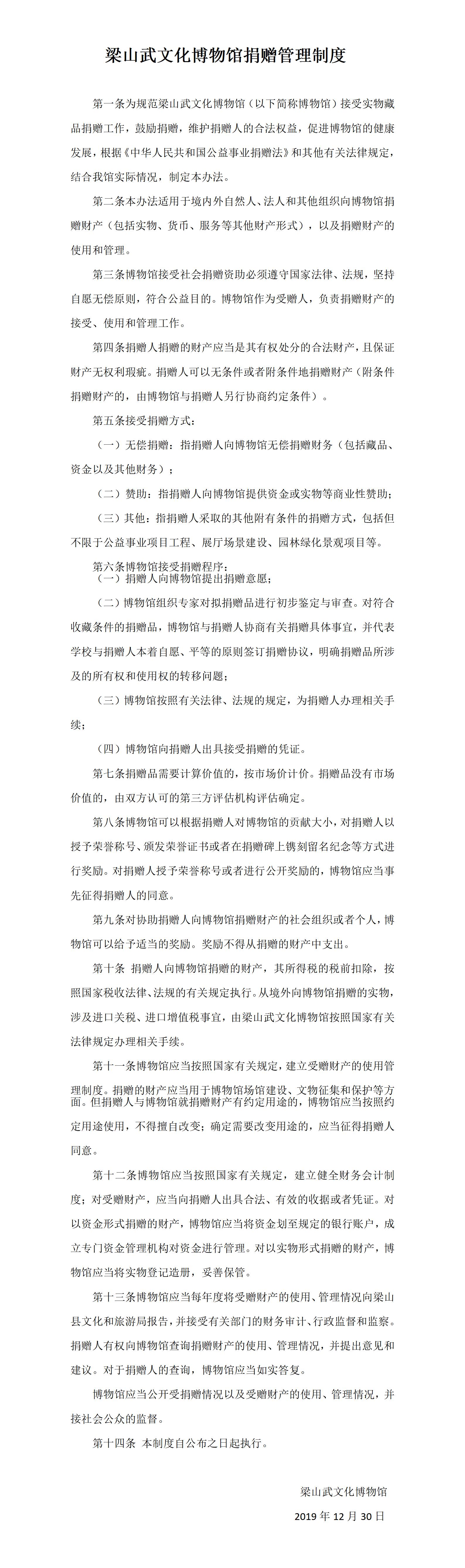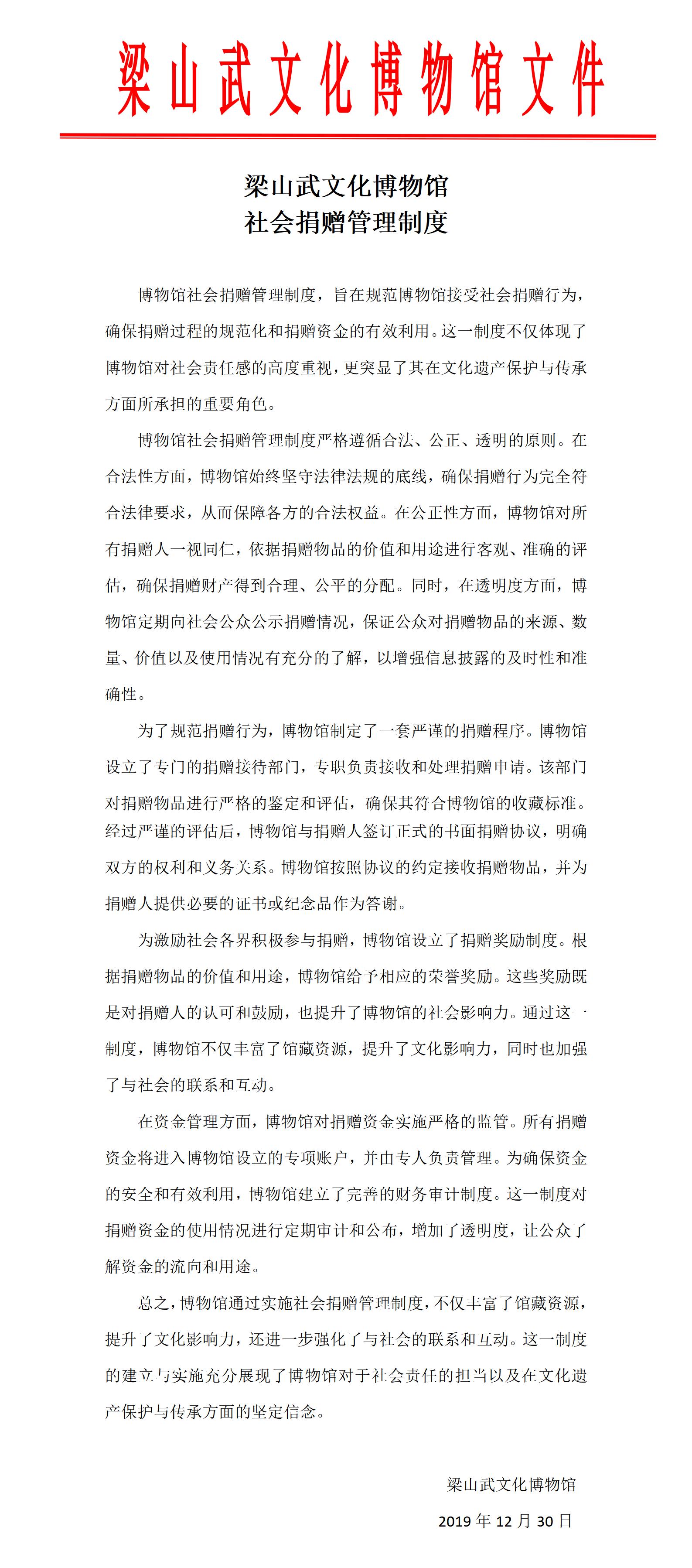 梁山武文化博物馆社会捐赠管理制度