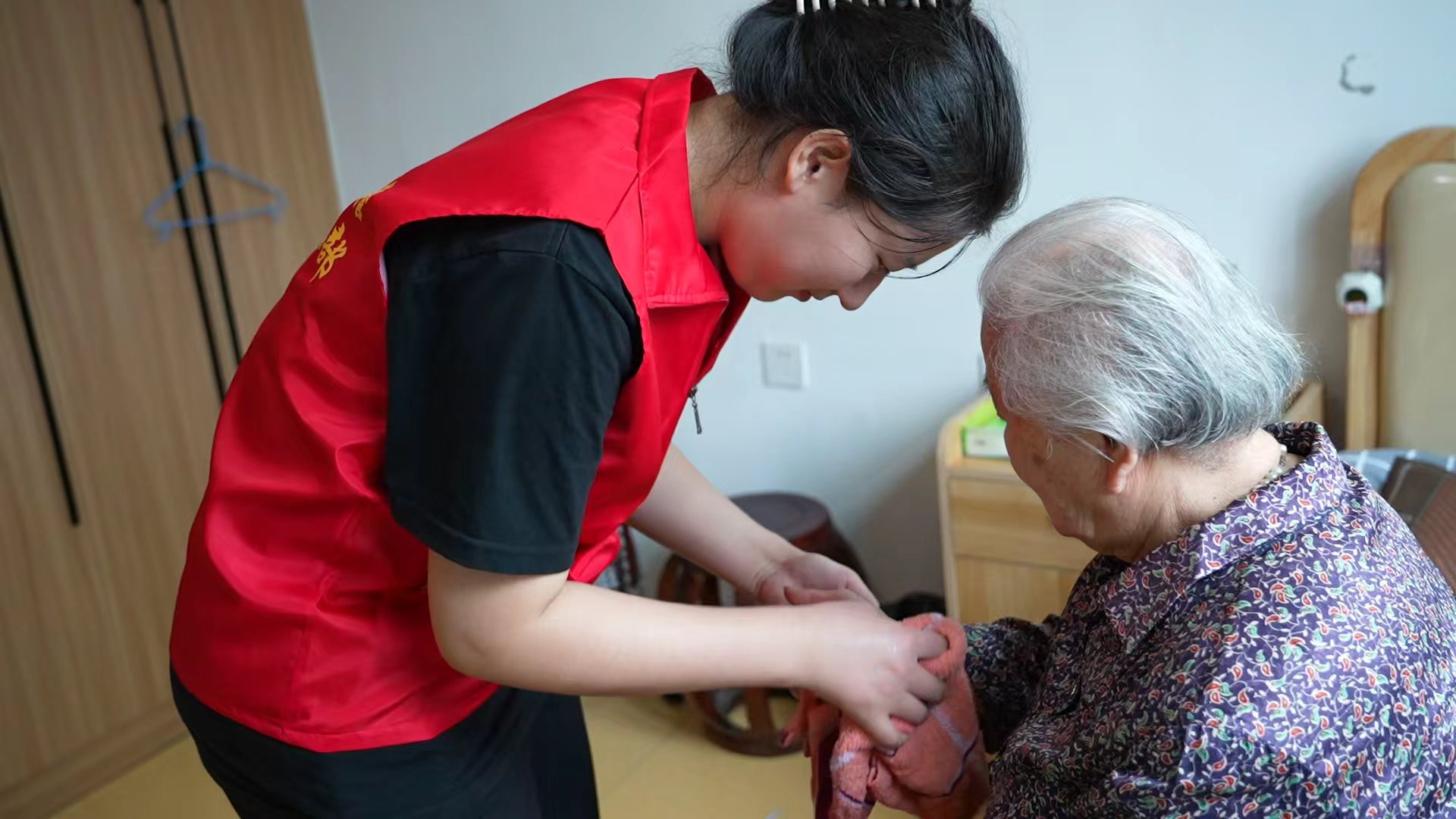志愿者们如秋日暖阳般浸润老人的心田:谈心时俯身倾听的温柔眉眼,腰鼓互动时飞扬的鲜红绸带,象棋对弈时会心一笑的默契,理发梳洗时指尖流淌的关怀,厨房里翻炒蒸煮间飘散的家常香气……每一个瞬间都凝结成动人的光点。