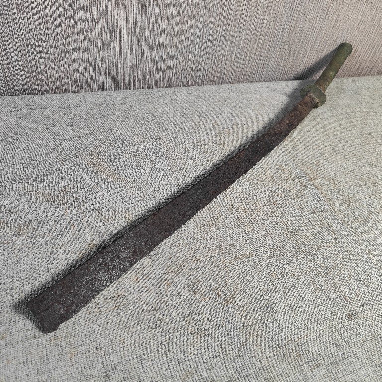 13世纪,铜柄直刀;重:0.64千克,长:79.5厘米。